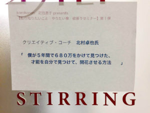 壁は乗り越えるものではなく消していくもの、一部分でも消すことができると世界が違って見えるんだろうなぁと感じました。ここ数ヵ月の間にいくつか受けたセミナーに引きつけて聴くことができ、少し自分の中で見えてきたものがあります。